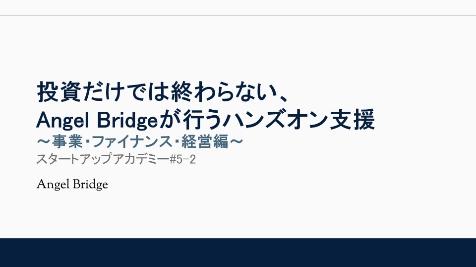前回のスタートアップアカデミー#5-1では、Angel Bridgeが行うハンズオン支援の「組