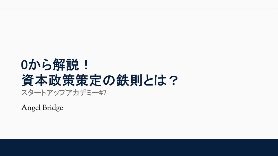 スタートアップアカデミー#7(資本政策策定の鉄則)