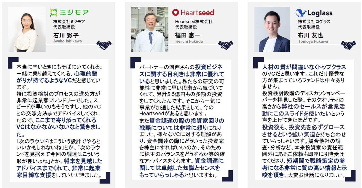 また、面接でお会いしたパートナーの河西、林をはじめ、キャピタリストの方々の人柄の良さに惹かれたことも入社の決め手となりました。