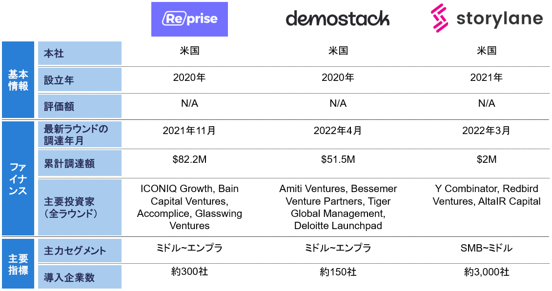 これらのペインを解消するのが、PLAINER社が提供するプロダクトデモをノーコードで作成できるSaaS『PLAINER』です。誰でもノーコードで素早く簡単に、実際のプロダクトを疑似体験できるコンテンツが製作可能になります。グローバル市場においても、プロダクトデモの自動化は急成長領域とされ、北米では「Reprise」「Demostack」「Storylane」などのスタートアップがBain Capital Ventures、Bessemer Venture Partners、Y Combinatorなどの著名VCから大型調達を実施し、市場拡大を進めています。日本国内でも同様のニーズが高まりつつあり、『PLAINER』のようなソリューションが今後の市場成長を牽引することが期待されています。